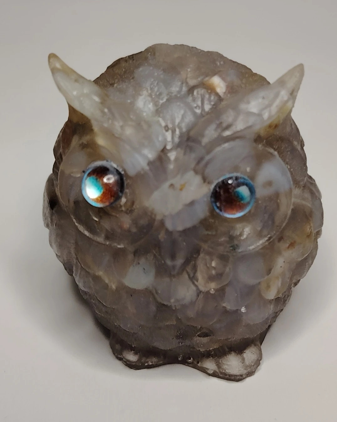 v minimálním rozsahu 90% sovy. Použity jsou kvalitní minerály. Oči jsou