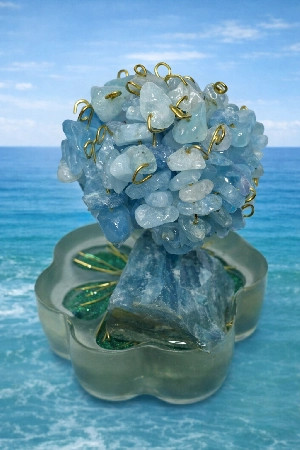 packa z křišťálové pryskyřice a třpytek, vložený surový akvamarín modrý AA o