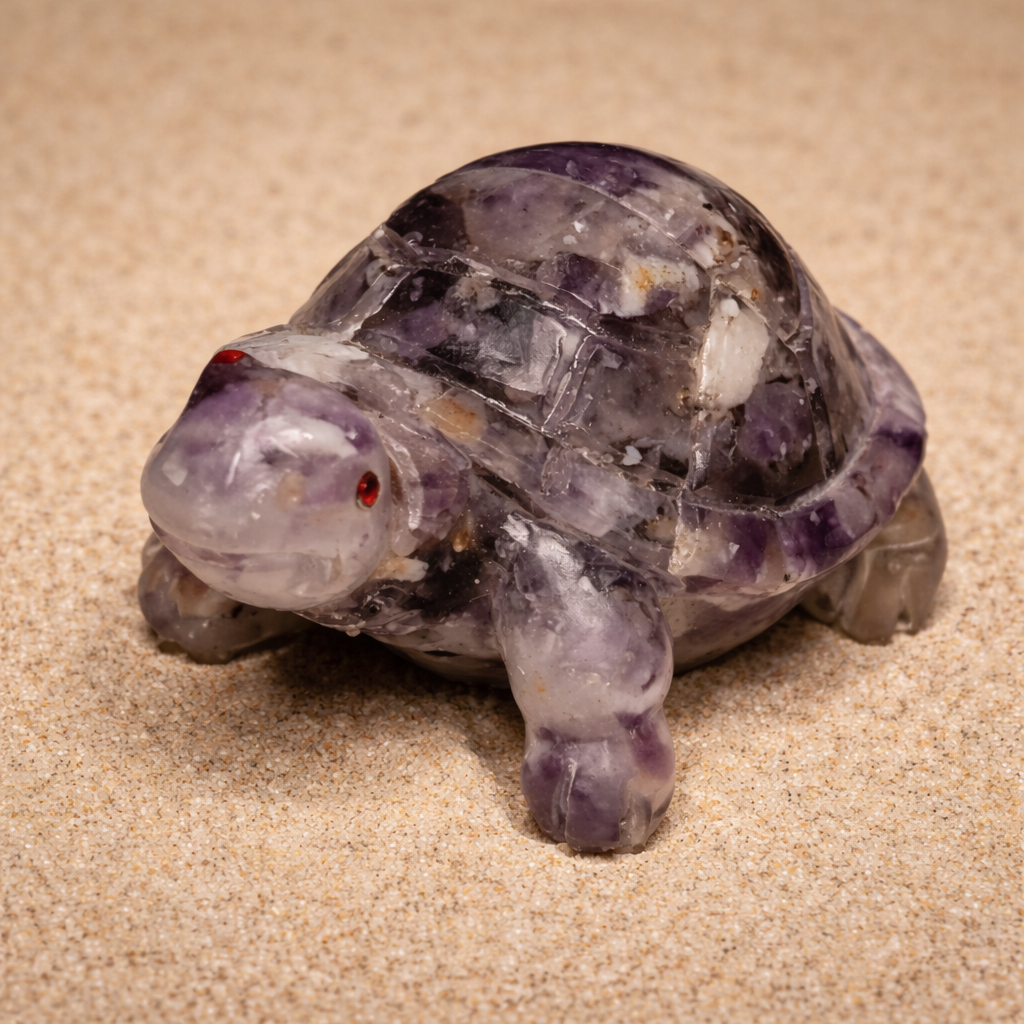 Želvička je vyrobená z pryskyřice, minerálů