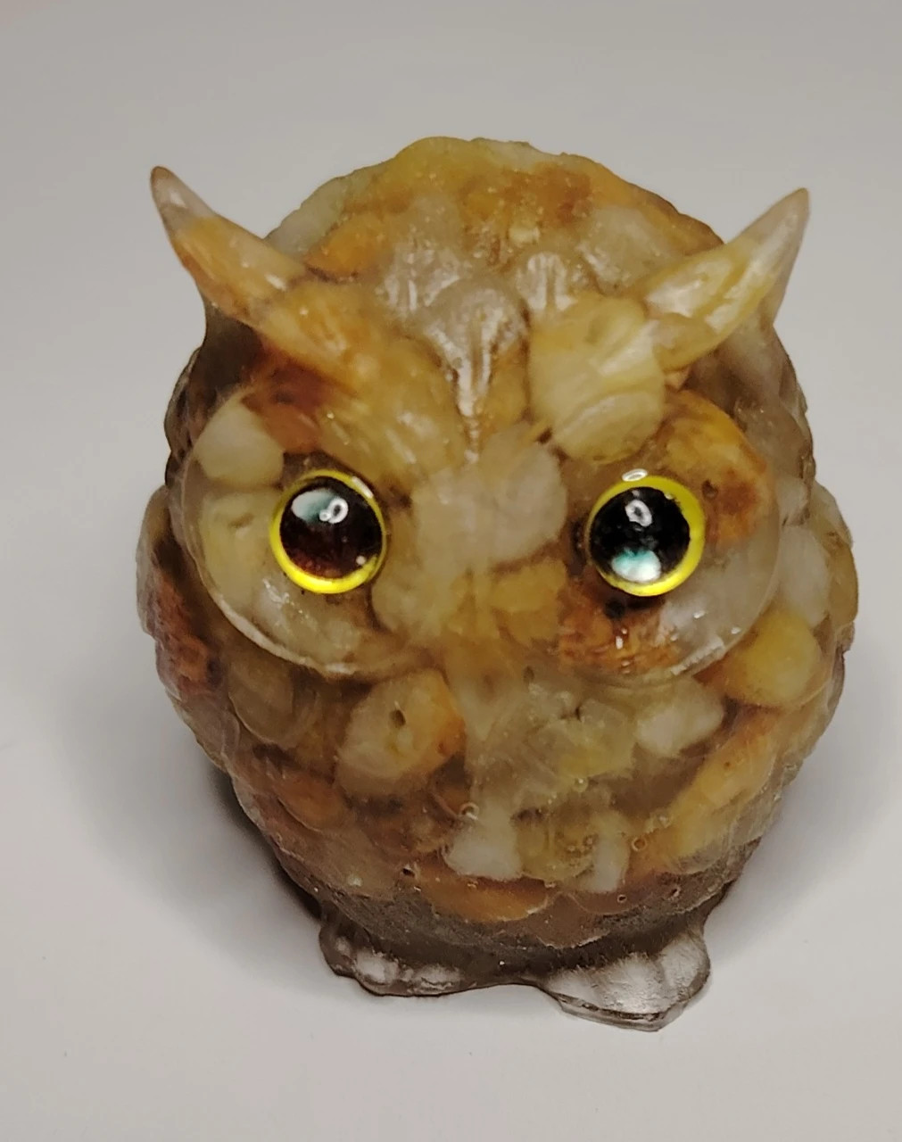 v minimálním rozsahu 90% sovy. Použity jsou kvalitní minerály. Oči jsou