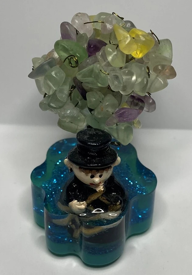 Minerály v koruně: fluority duhové vpletené do koruny stromu, o velikosti XS (do 1