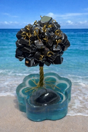 packa z křišťálové pryskyřice, vložený leštěný hematit o velikosti M (1,5 – 2,5