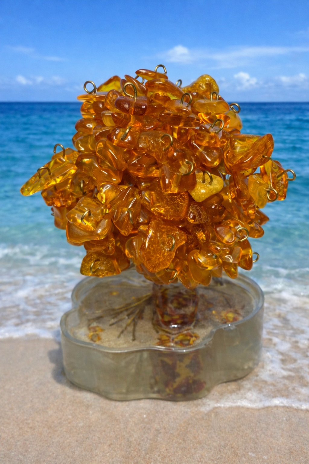 Minerály v koruně: jantary medové vpletené do koruny stromu, o velikosti XS (do 1