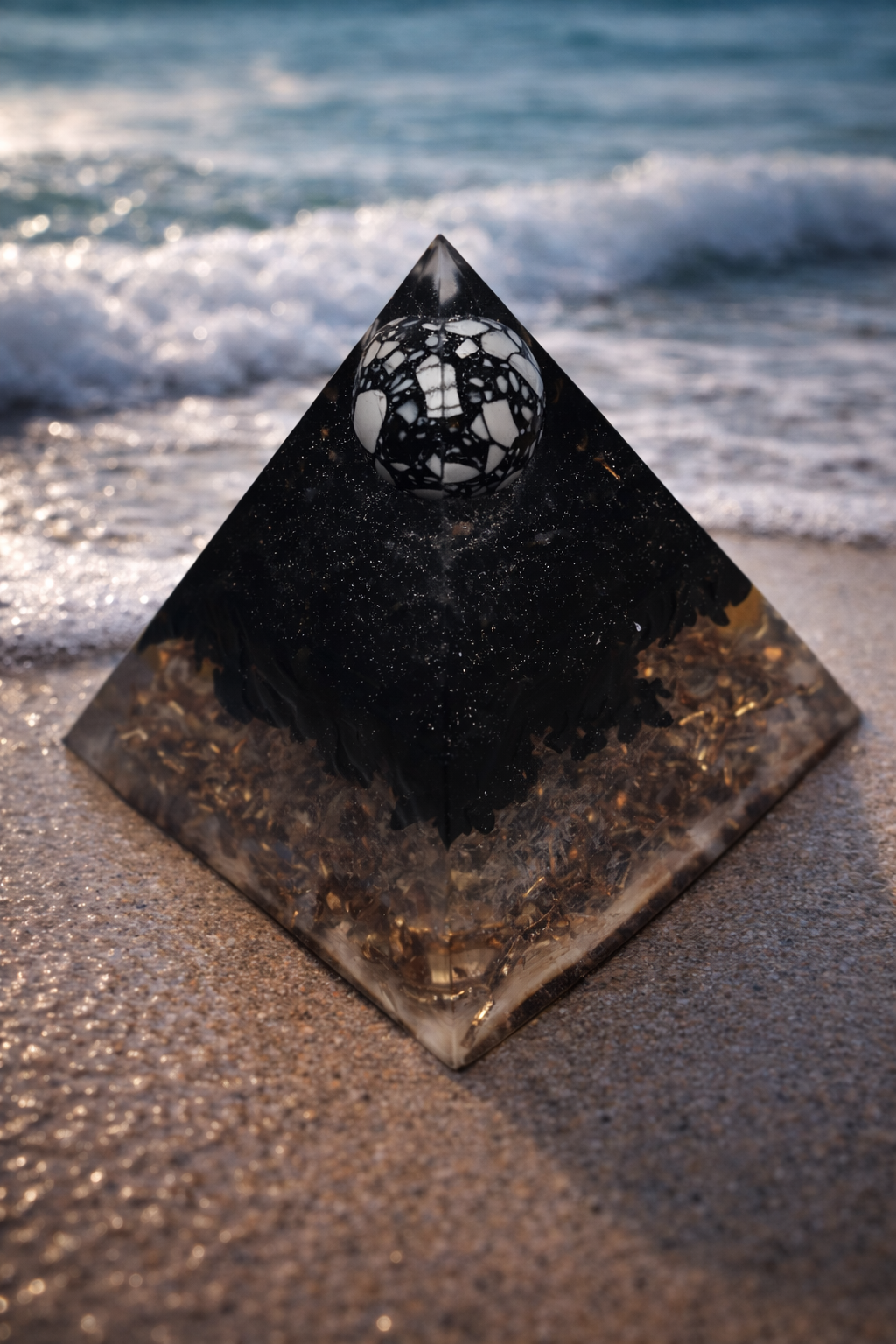 vybírám velice pečlivě. Pyramida je sestavena jako orgonit, má dosah ochrany a