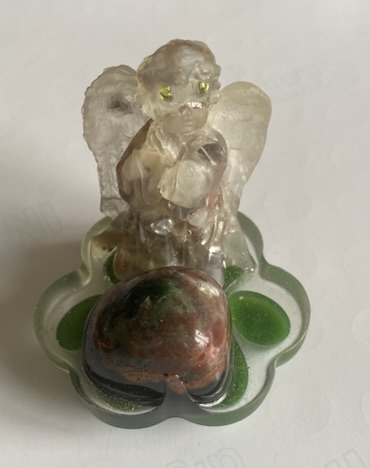 probarvená do zelena. Anděl je z pryskyřice Resin Italy. V andělu je achát šedý sekaný na malé