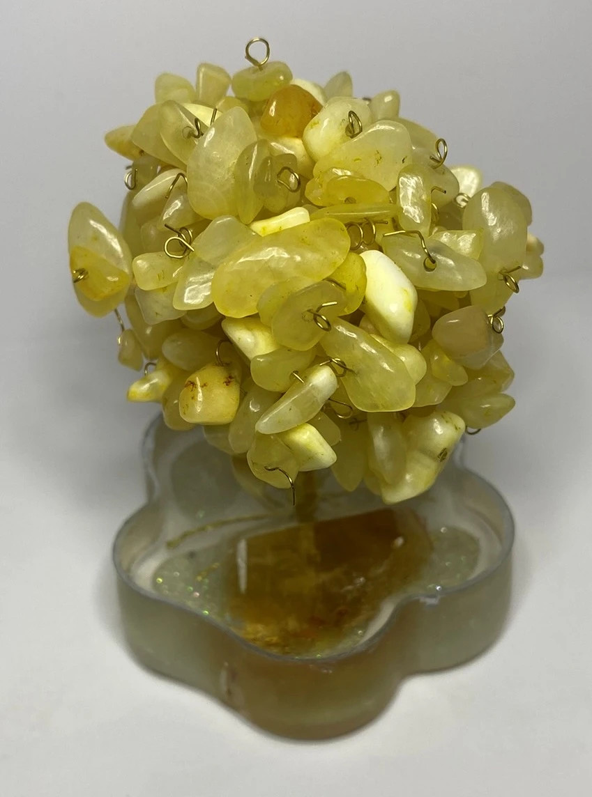 Minerály v koruně: kalcity medové vpletené do koruny stromu, o velikosti XS (do 1