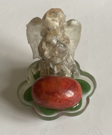 probarvená do zelena. Anděl je z pryskyřice Resin Italy. V andělu je achát šedý sekaný na malé