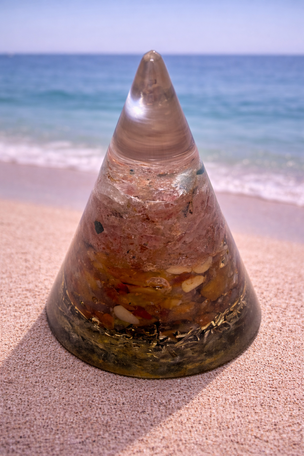 je sestaven jako orgonit, má dosah ochrany a očisty 4 metry.