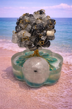 packa z křišťálové pryskyřice a třpytek, vložený leštěný křišťál s turmalínem o