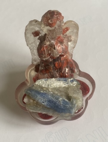 probarvená do fialova. Anděl je z pryskyřice Resin Italy. V andělu je jaspis červený sekaný na