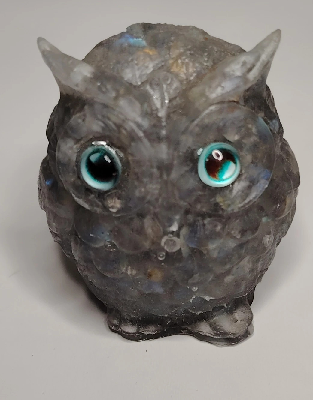 v minimálním rozsahu 90% sovy. Použity jsou kvalitní minerály. Oči jsou