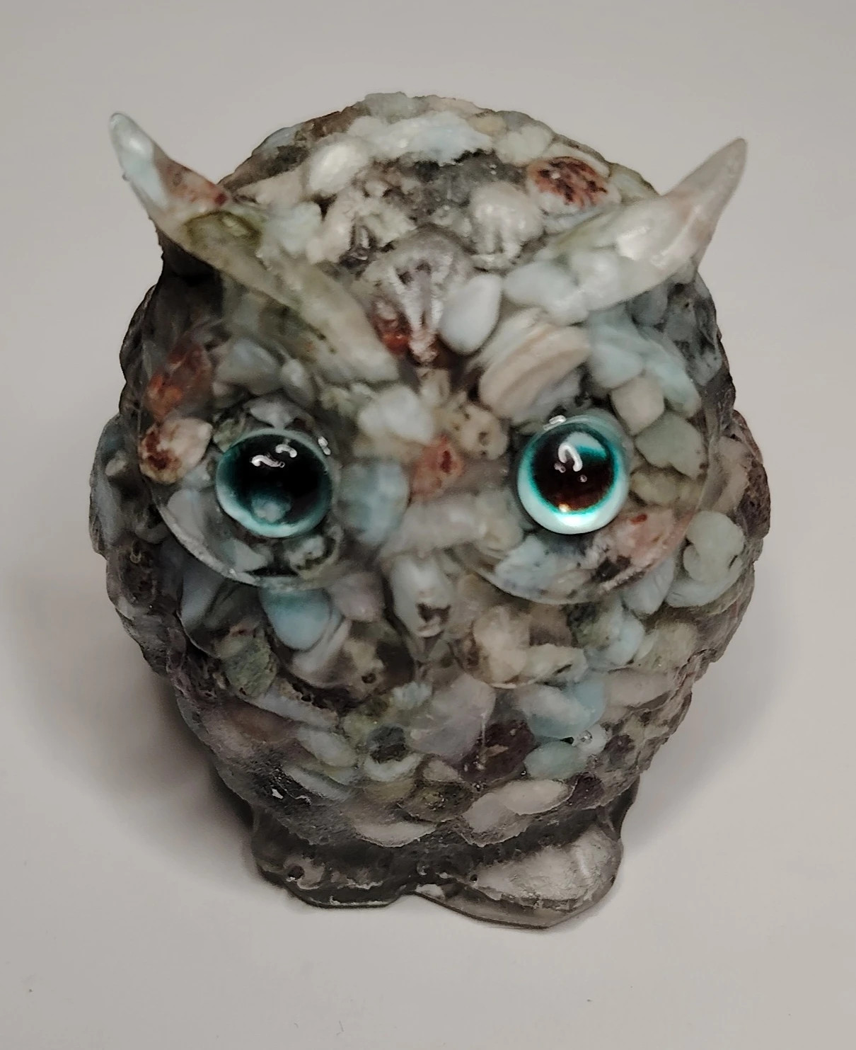 v minimálním rozsahu 90% sovy. Použity jsou kvalitní minerály. Oči jsou