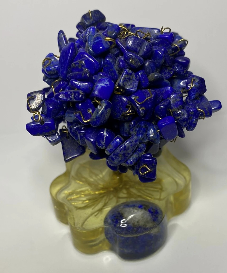 základna: psí packa z křišťálové pryskyřice, vložený leštěný lapis lazuli o