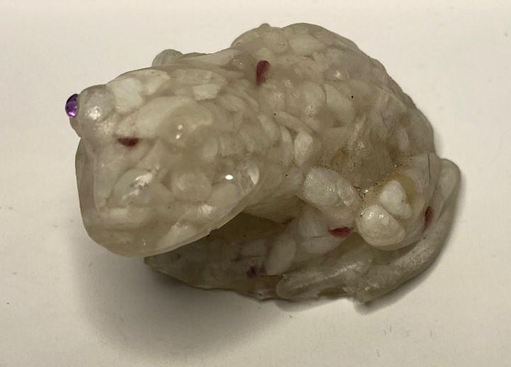 rozsahu 90% žabky. Použity jsou kvalitní minerály. Oči jsou ze štrasových
