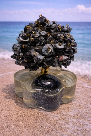 packa z křišťálové pryskyřice, vložený leštěný obsidián vločkový o velikosti L