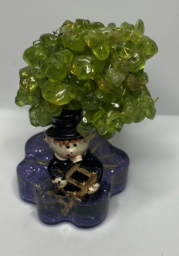 Minerály v koruně: olivíny vpletené do koruny stromu, o velikosti XS (do 1