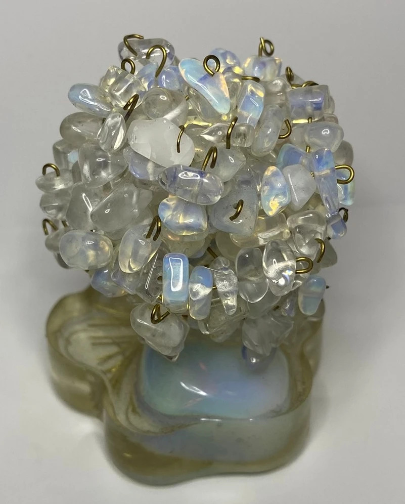 Minerály v koruně: opality vpletené do koruny stromu, o velikosti XS (do 1 cm)