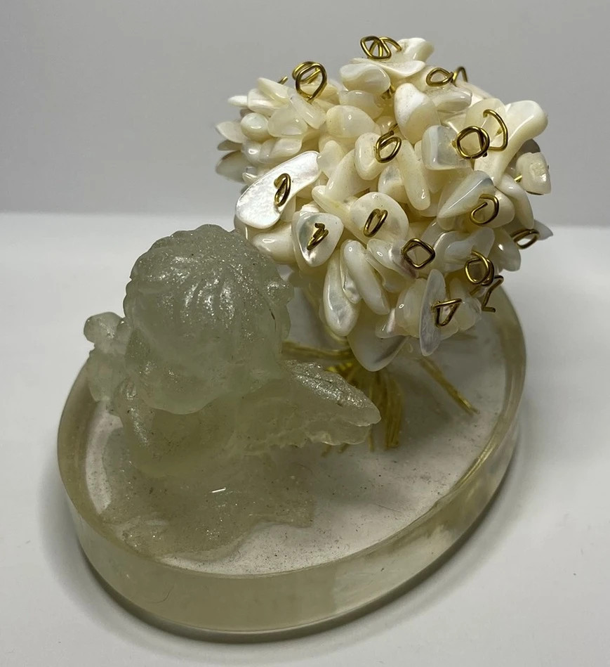 základna: ovál z křišťálové pryskyřice s holografickým andělem, vložený