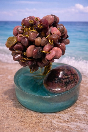 v kruhu z křišťálové pryskyřice, vložený leštěný rodonit o velikosti L (2,5 – 3