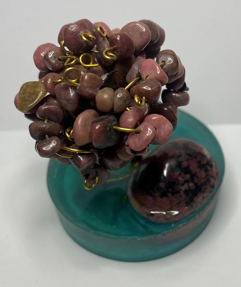 Minerály v koruně: rodonity vpletené do koruny stromu, o velikosti XS (do 1 cm), pochází z