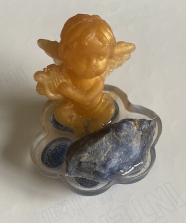 třpytky. Anděl je z pryskyřice Resin Italy, zlatožluté barvy.