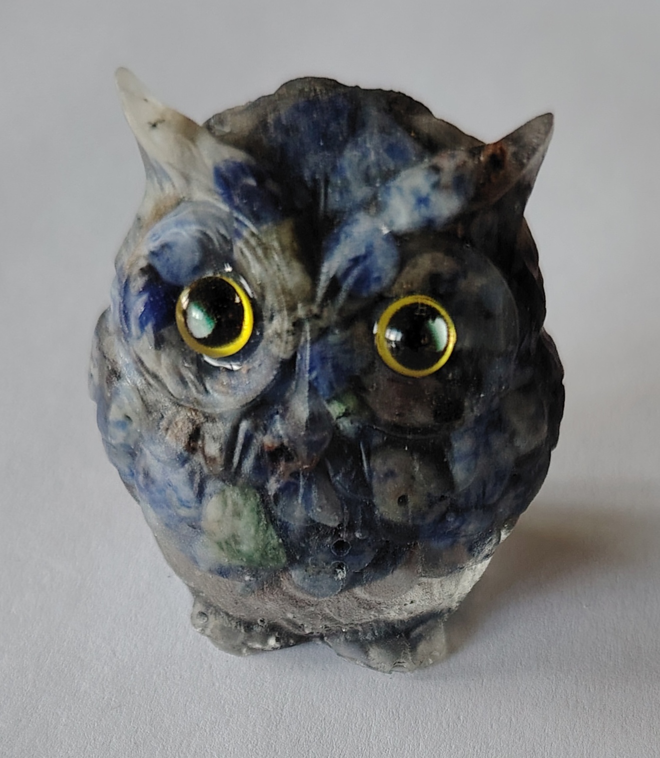 v minimálním rozsahu 90% sovy. Použity jsou kvalitní minerály. Oči jsou
