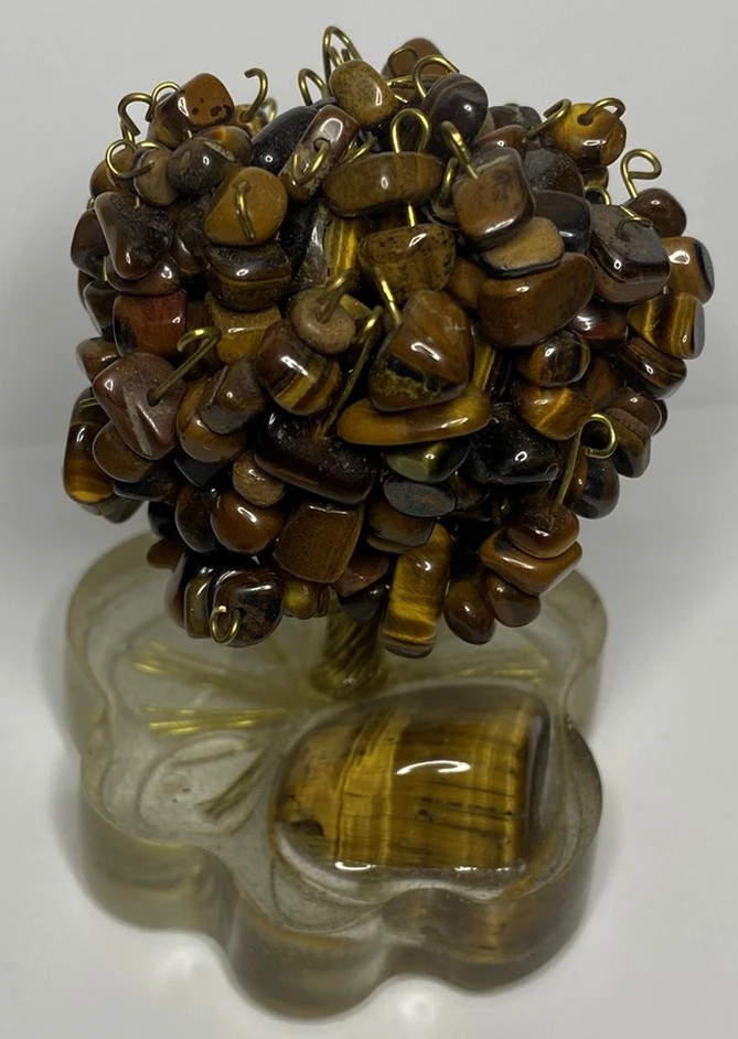Minerály v koruně: tygří oka vpletená do koruny stromu, o velikosti XS (do 1 cm)