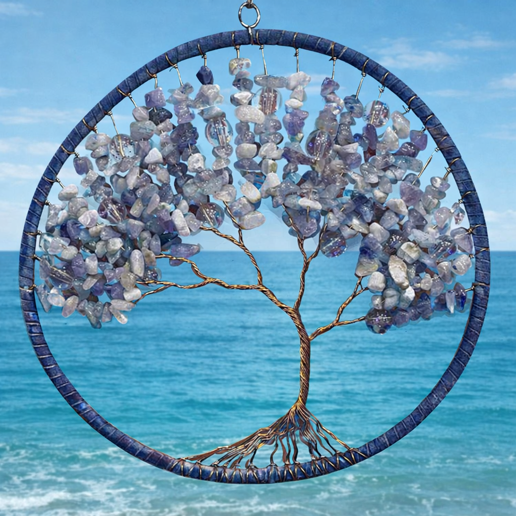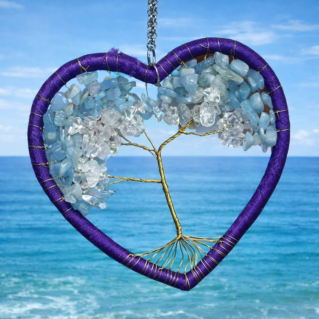Akvamarín modrý, křišťál v srdci - strom života